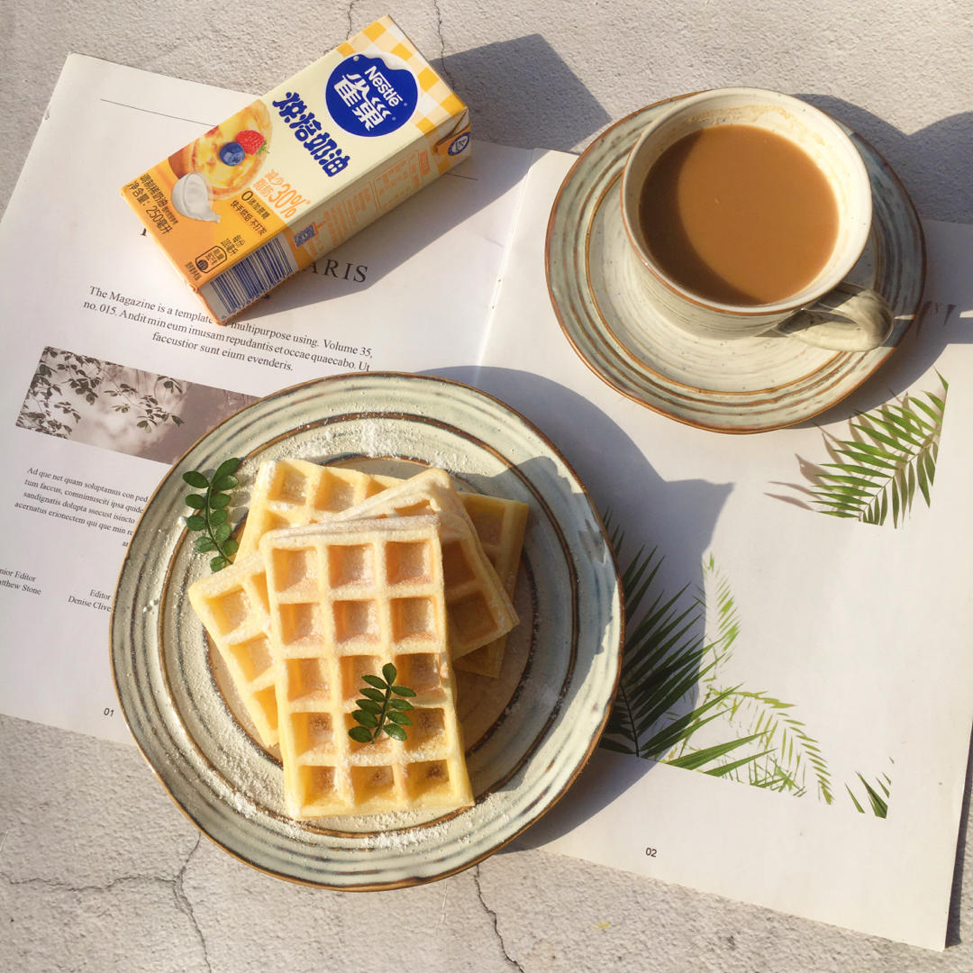 今日份早餐:烘焙奶油做的华芙饼配咖啡☕️