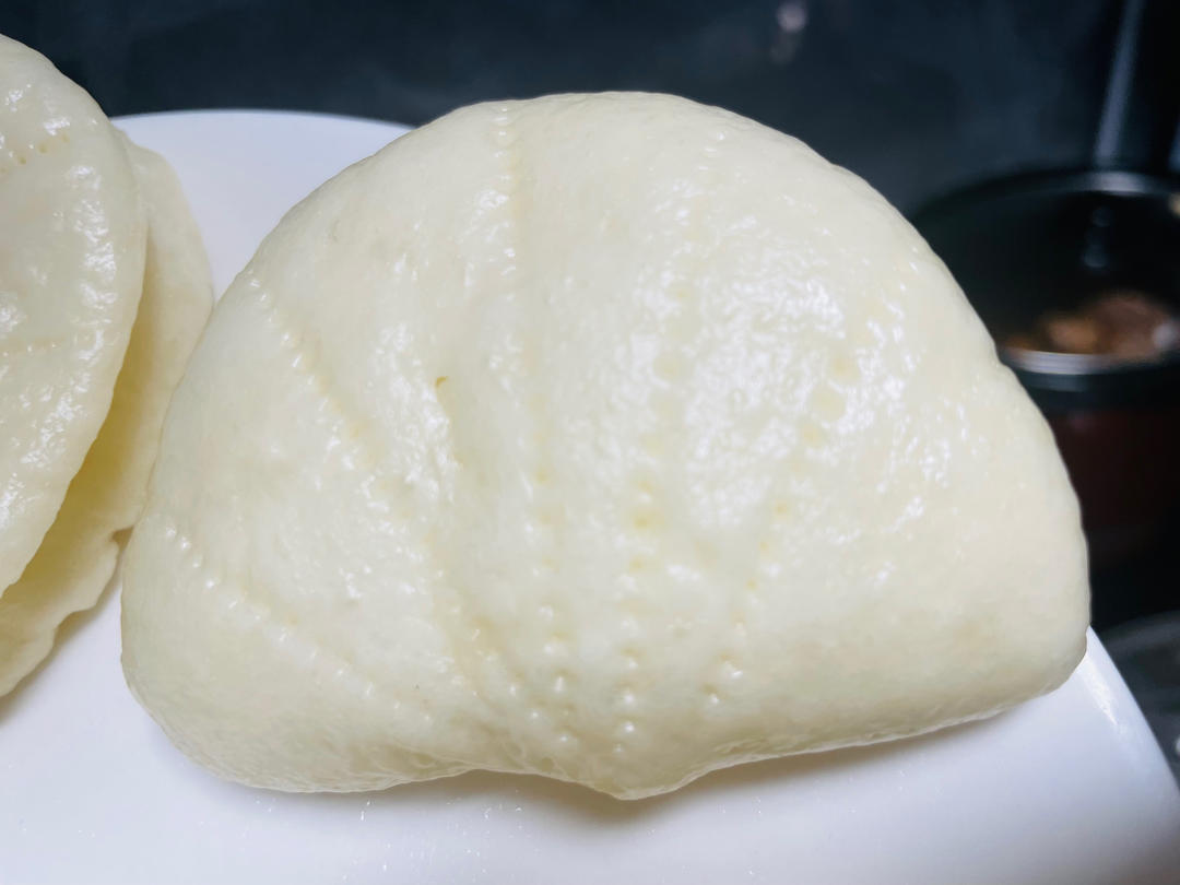 荷叶饼:500克面粉,酵母5克,糖5克,猪油5克,泡打粉3克,温水适量。总重750克左右,蒸了18个,每个40克左右。