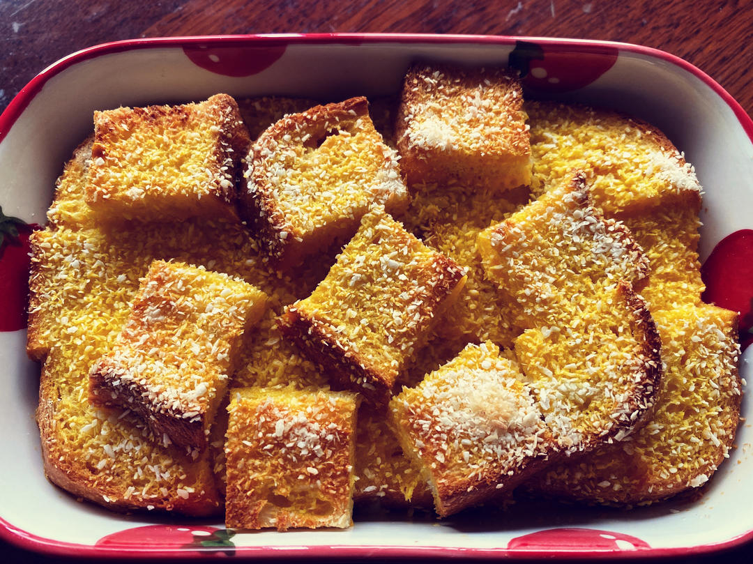 快手早餐这样做‼️椰香蛋奶烤吐司🍞一学就会