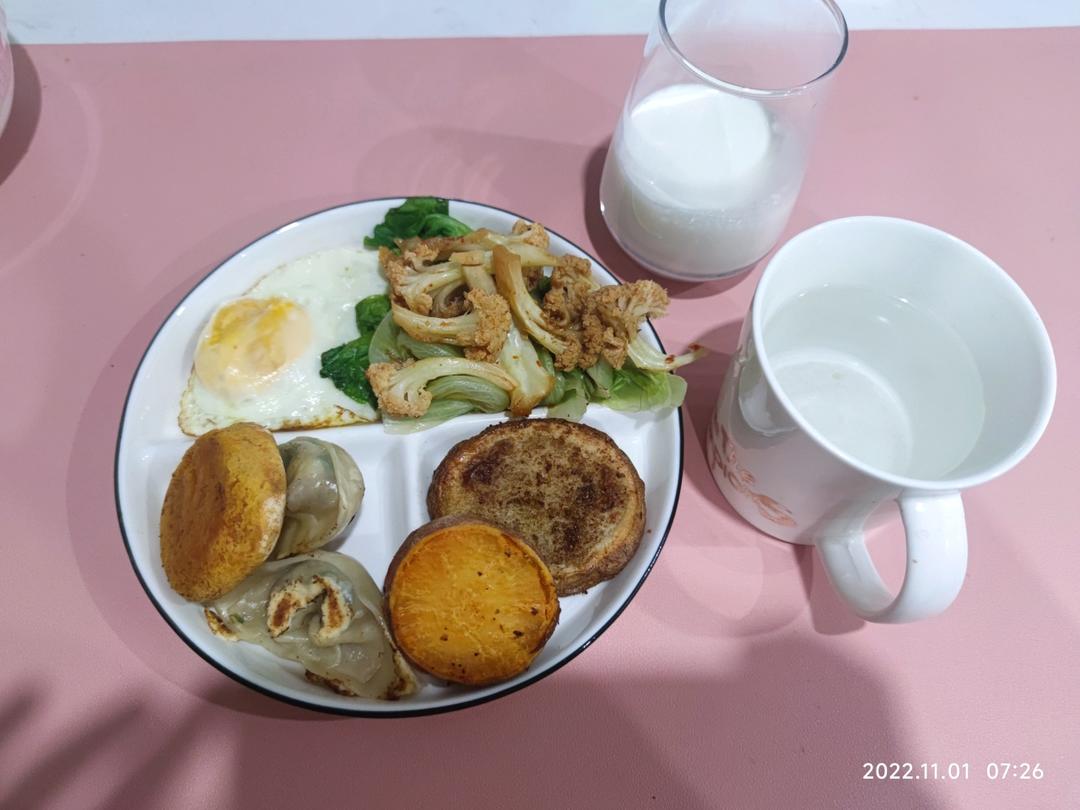 零尘香 做过 11月早餐马拉松 https://www.xiachufang.com/ad/events/redirect_custom_url?rcu_variety=marathon">#定格我的早餐瞬间# 今日份早餐,主食有些多,但也没吃完(剩了一个煎饺,一块儿土豆 2022-11-01