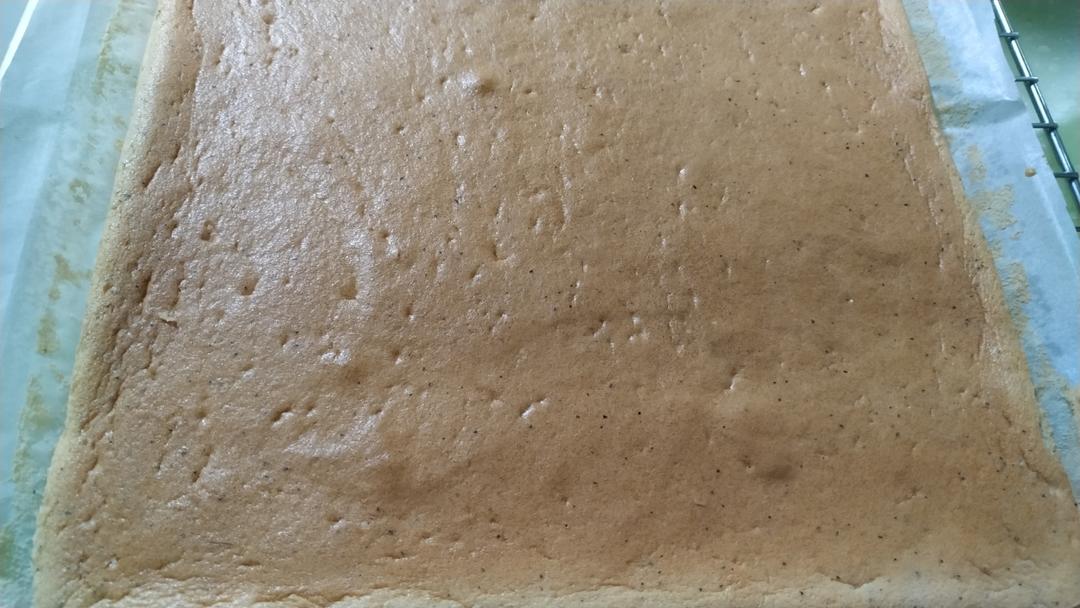 第一次做蛋糕卷,加了点红茶,还算成功,就差抹点奶油了!