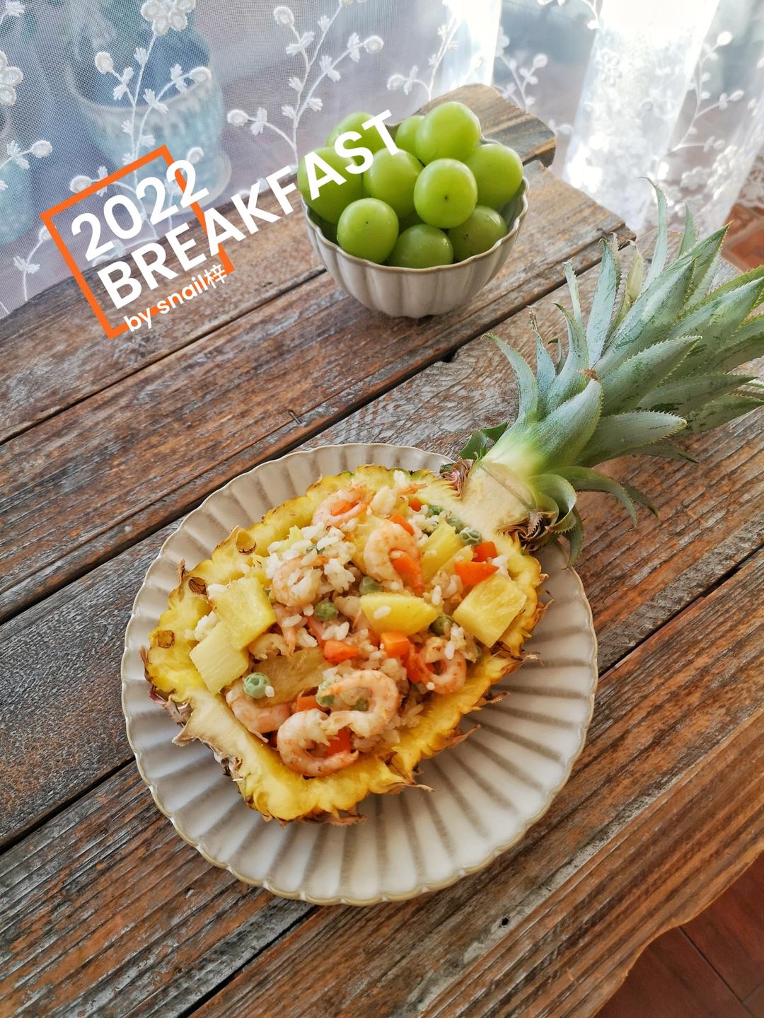 彩丁虾仁菠萝炒饭+葡萄