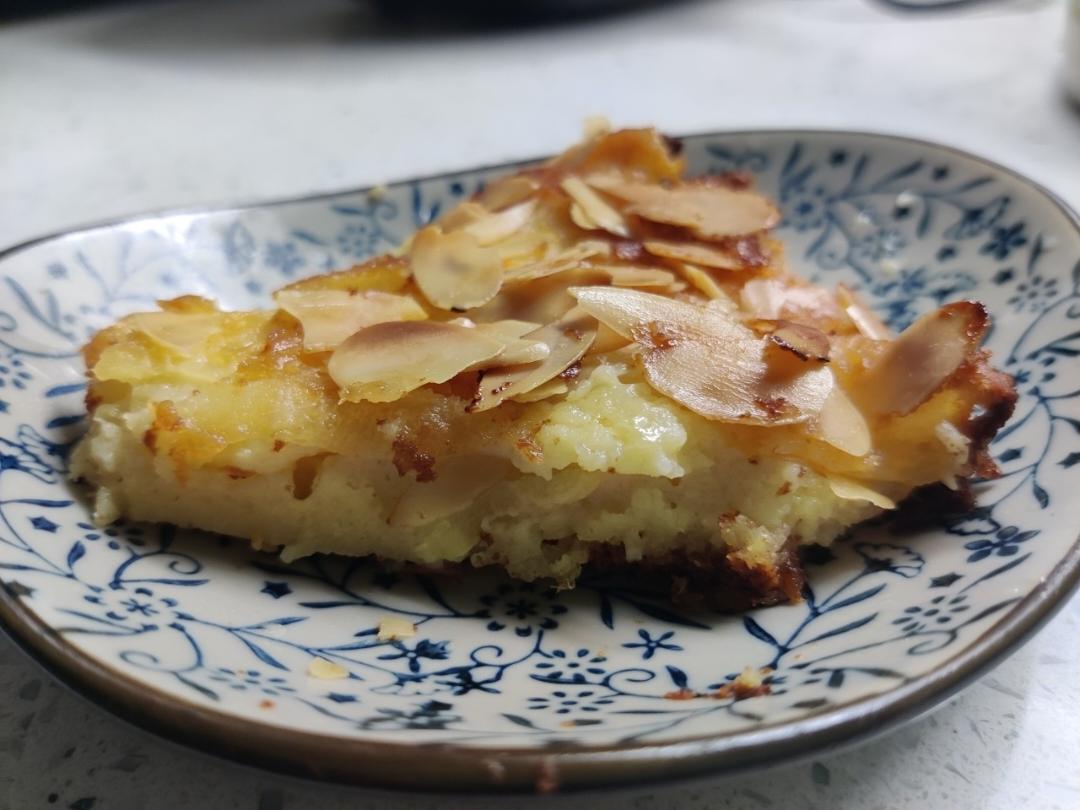 小可2006 做过 苹果派(无派皮) 热量还是挺大的😶,味道还是不错的😛。没有蓝莓放了葡萄干,全烤焦了😟,杏仁片是亮点,脆脆的,和软软的苹果片正好形成鲜明对比。找了个9寸批萨盘装,忘记垫油纸了😰,结果就是粘底了😓还糊了😥(饼太薄了,时间长了)。#晚餐•2022年11月8日# #小吃小吃😍# 2022-11-08