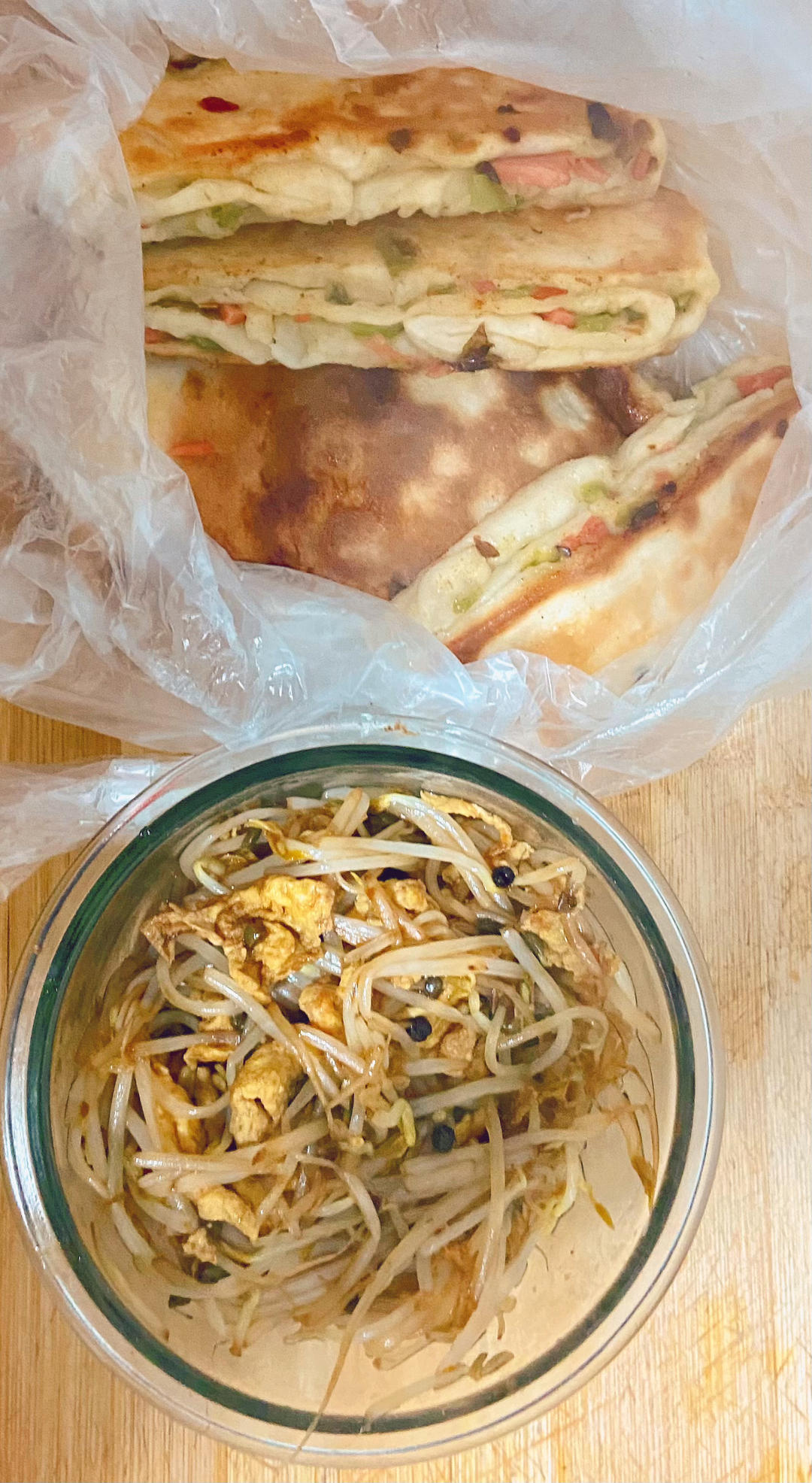 尖椒火腿饼 豆芽炒鸡蛋