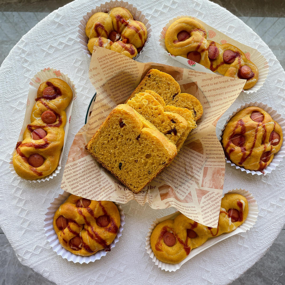 用南瓜做的包包 吐司烤焦了
