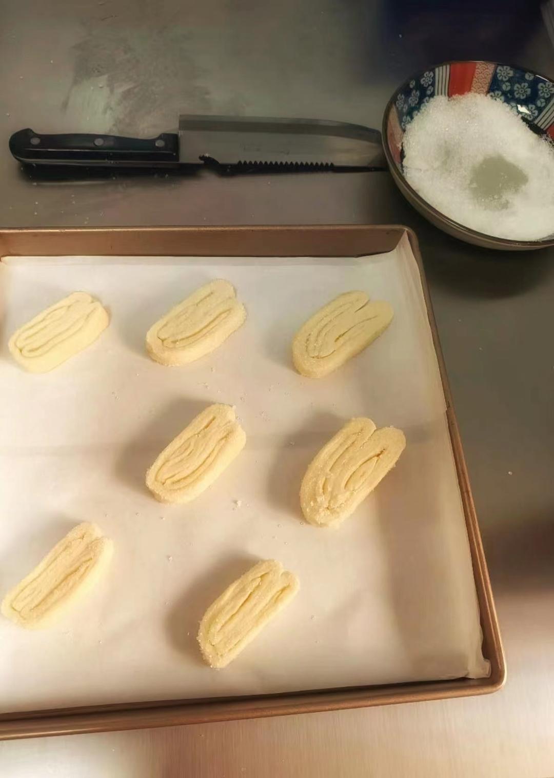 这次做了巧克力蝴蝶酥,挑战一下四次四折。这次开的比较平,更舒展了。