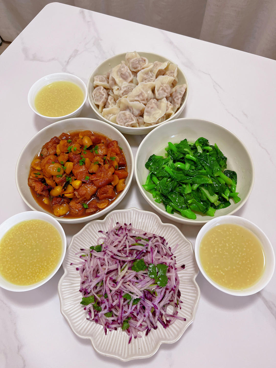 家常菜晚餐 玉米猪肉馅 凉拌萝卜丝
