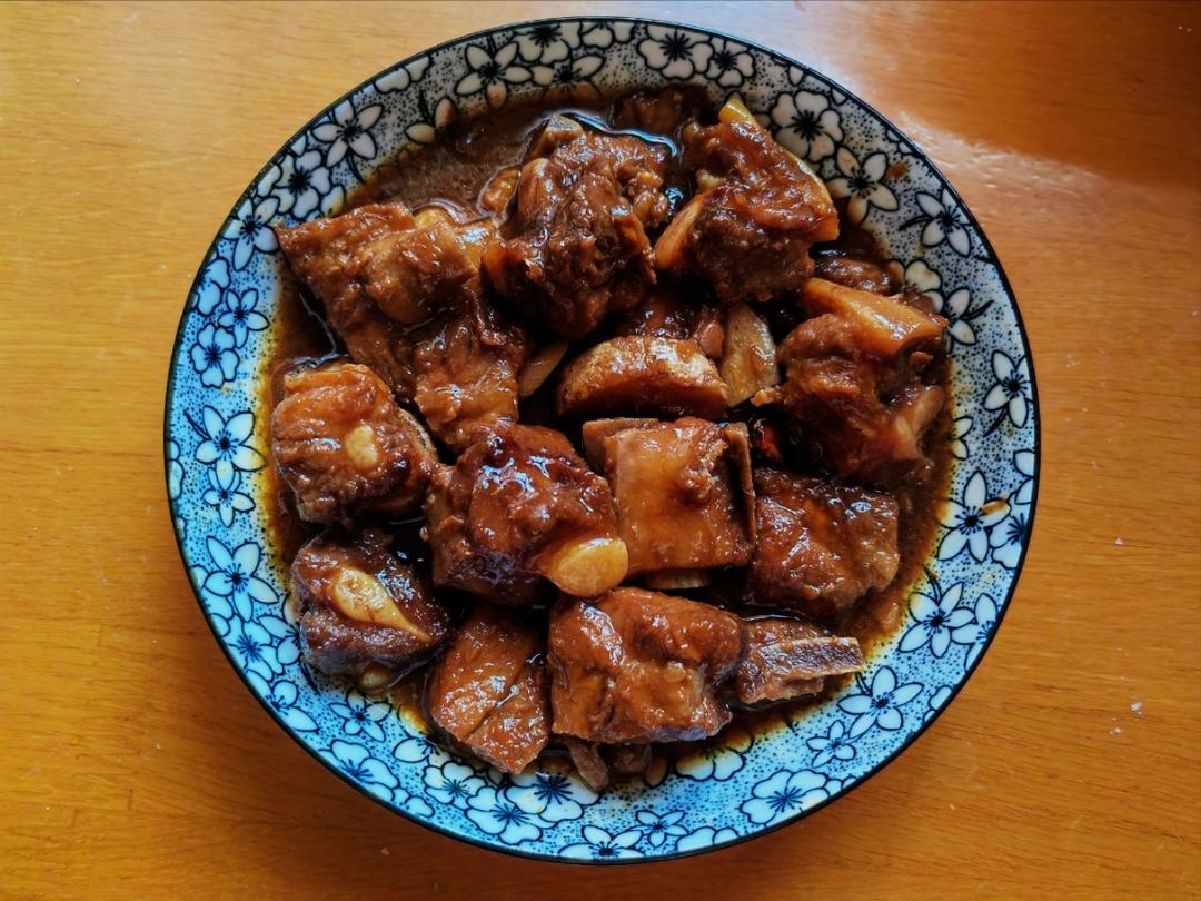 微微_笑笑 做过 蒜香排骨(小美版) 400克黑猪排骨做的,不过这次没放那么多蒜,做成红烧排骨了,煮了40分钟,收汁前尝了下咸淡,正好,就没收汁收的太狠,要不该咸了,之前做过蒜香排骨也很好吃,小美比用锅做还是省事些,做面包醒面时候就做上了,让它自己咕嘟着,和老妈俩人一餐排骨正好吃完,也不用吃剩的。 2022-11-19