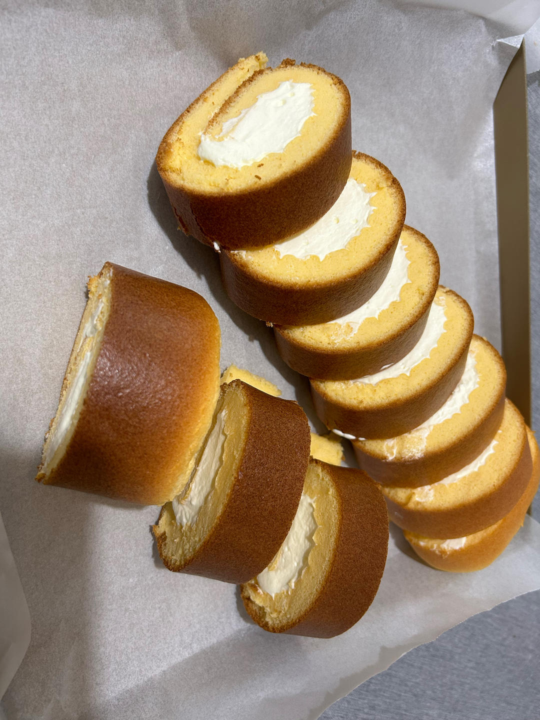 Kitty60 做过 烫面蛋糕卷‼️配方好记全是5‼️绵润又细腻 糖减了10g还是觉得好甜呀,夹了奶油又更腻了,我不喜欢吃甜,下次再减糖试试。还有就是烤箱温度不均匀,温度偏高,颜色上深了 2022-11-23