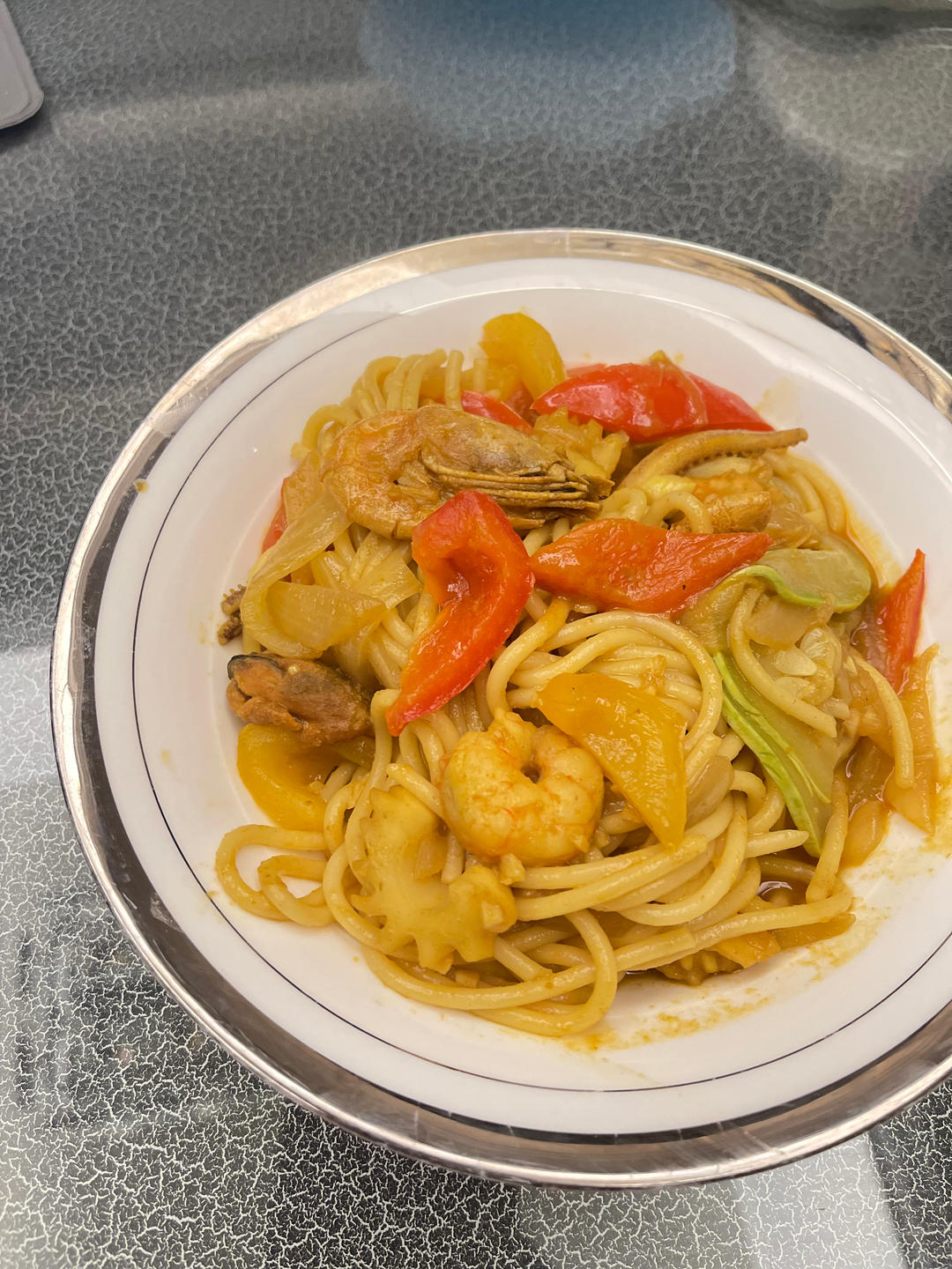 泰式红咖喱海鲜意面