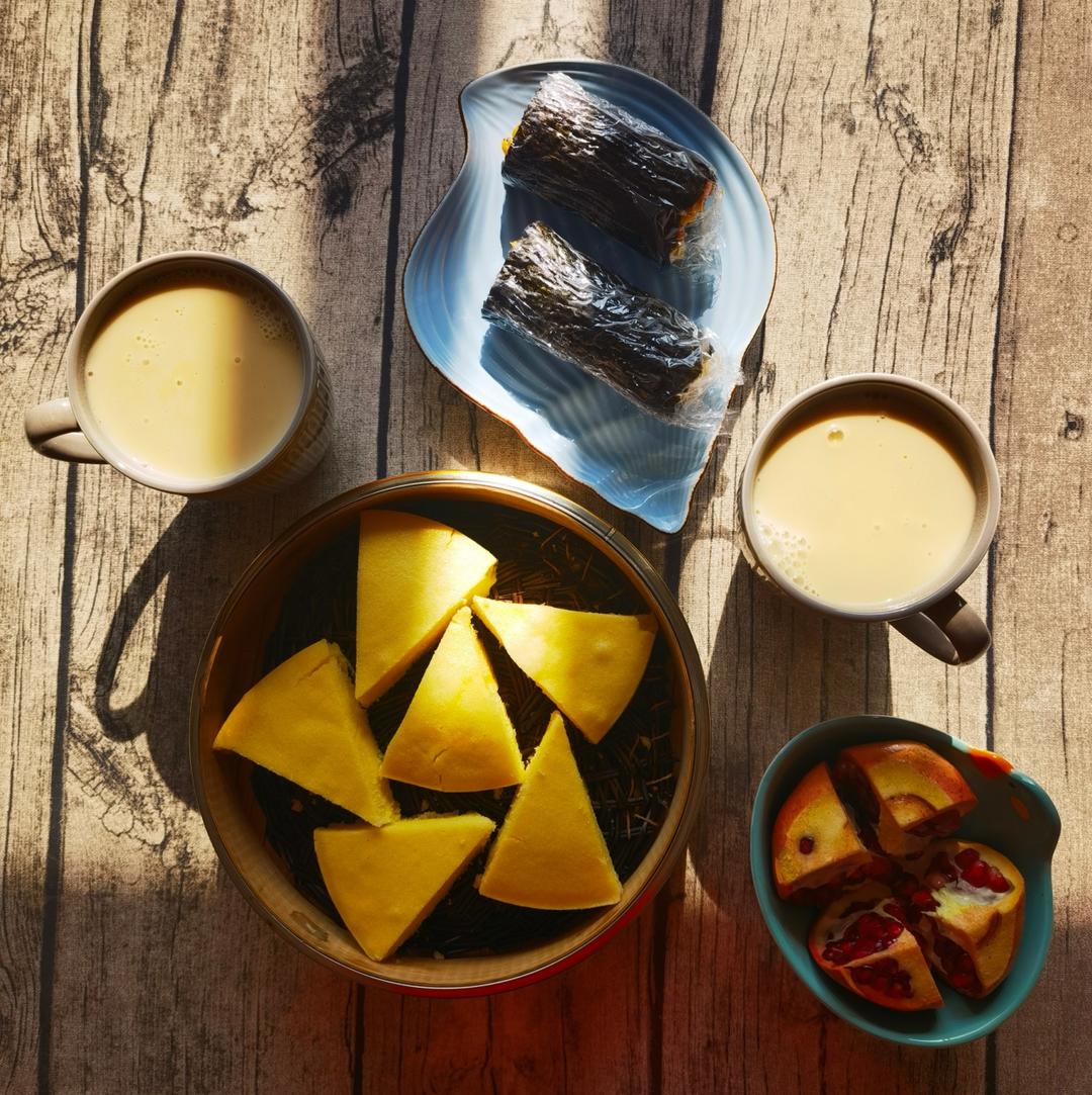 第2191餐:豆浆、黑米饭团、小米糕、石榴!
