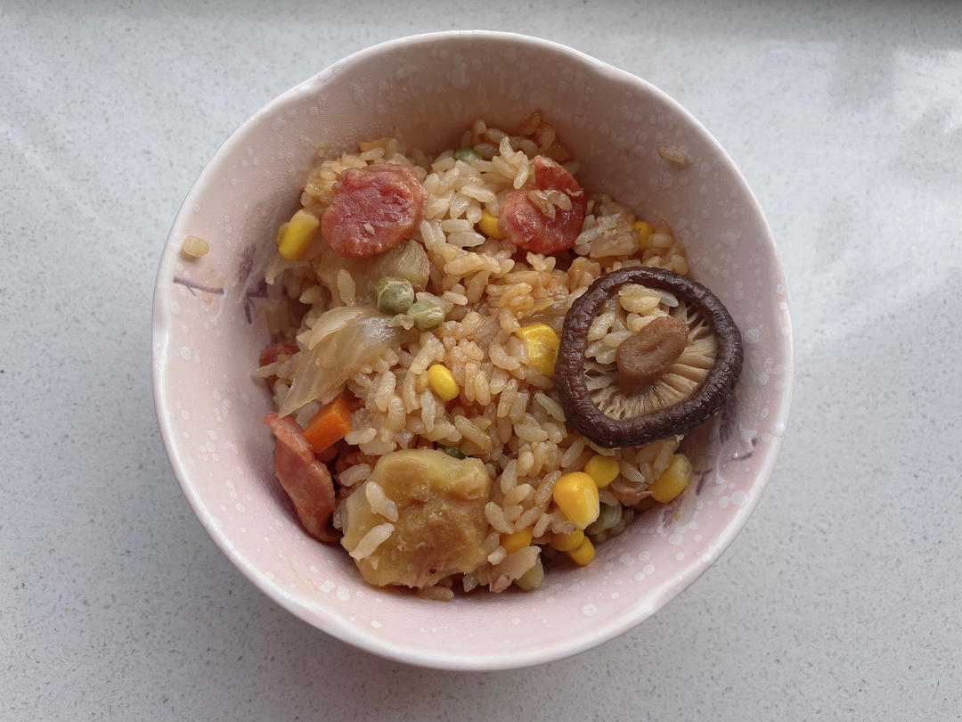 天秤座果果 做过 香菇板栗焖饭,快手美味的一锅端懒人料理 #午餐•2022年11月28日# 热油,炒了下洋葱,腊肠,杂菜,香菇。倒入电饭煲,两勺生抽,一勺老抽,半勺蚝油,焖饭。下次可以放点儿香油。 2022-11-28