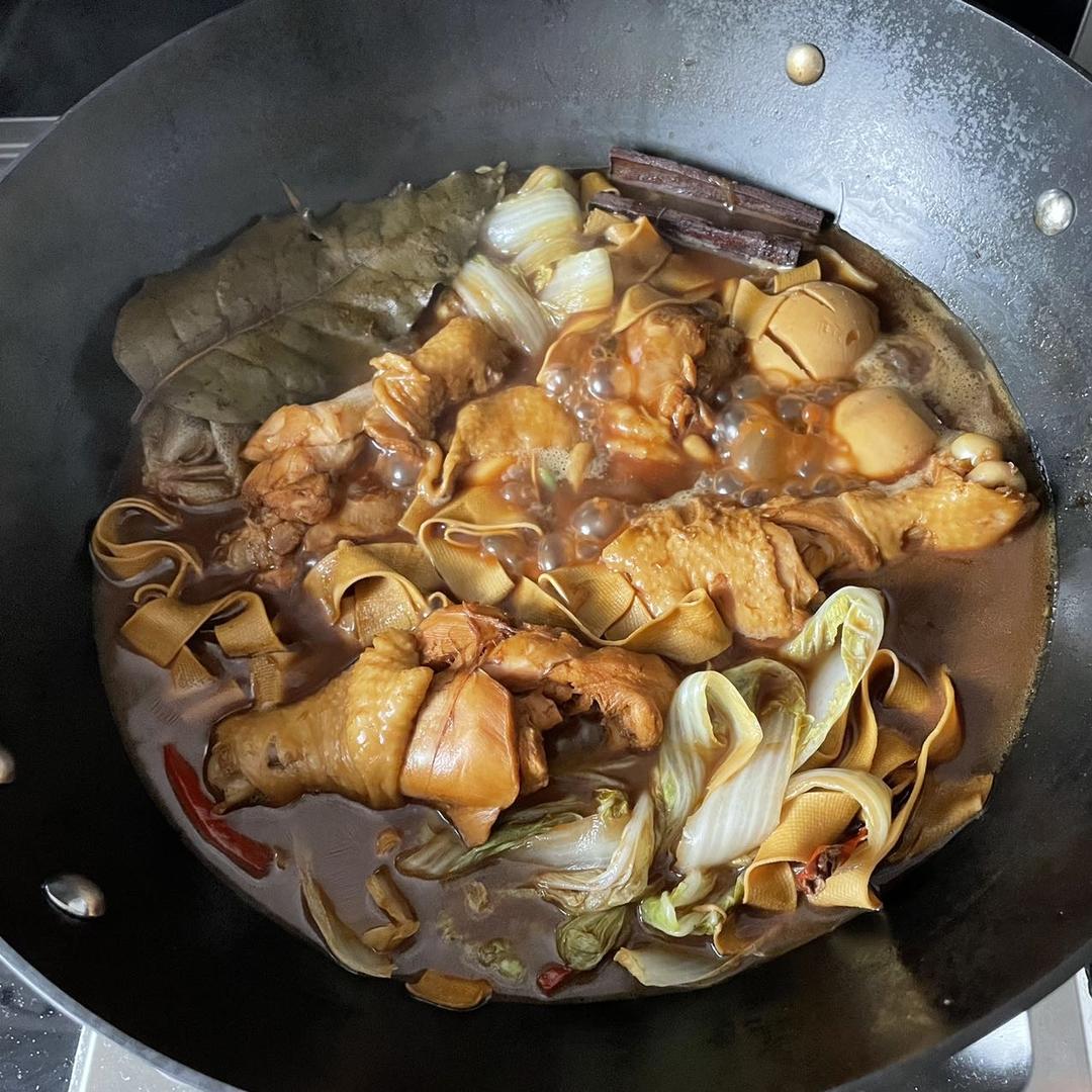 阿冰要好好吃饭 做过 卤鸡腿,卤一切 很简单,照着做就行了,调料是完全按照教程做的,有点淡,后面有又加了大概两勺盐三勺生抽,可能是我放的食材多,水也加的多,边炖边尝就行了,又加了娃娃菜莲藕,加一点卤汁拌米饭绝了😋#卤鸡腿# 2022-11-29