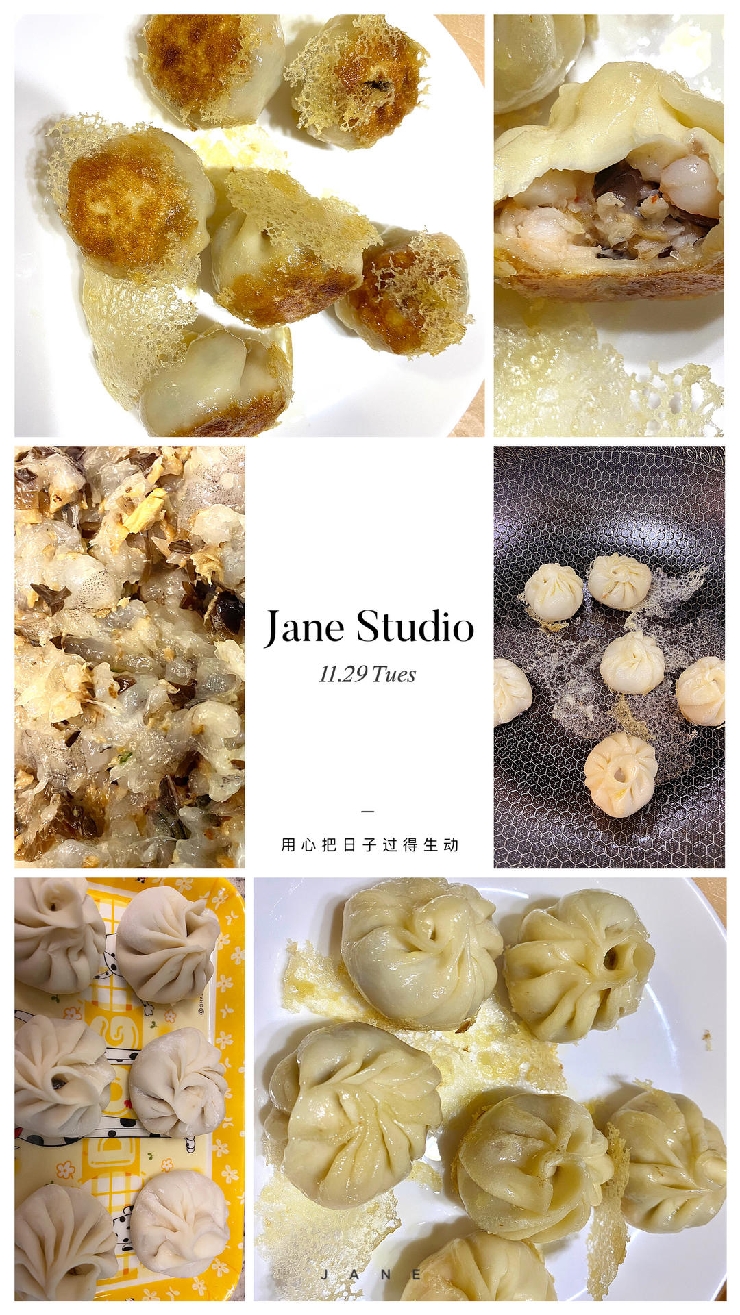 锅贴,不经意做成小笼包的样子,变着花样吃虾