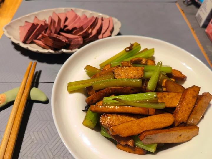 封day1~西芹炒豆干,无花果烤布里奶酪,虾扯蛋配牛角碱水面包加咖啡