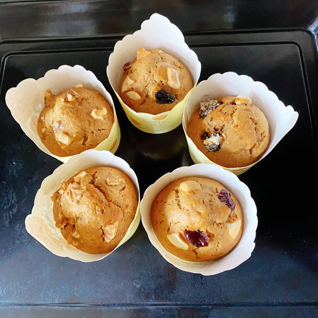 喜渡 做过 香蕉核桃麦芬 (超级湿润) 0.5倍做了6个小杯,入模量42g/个,少了。巨松软,吃着都不像马芬了。家里只有固体红糖,全部用红糖+牛奶+黄油微波炉融化搅匀。还是感觉偏甜,可能是用的芝麻蕉太甜了。如果放果干的话,还是得先泡软,临时起意丢了几个上去,很干硬。 2022-12-11