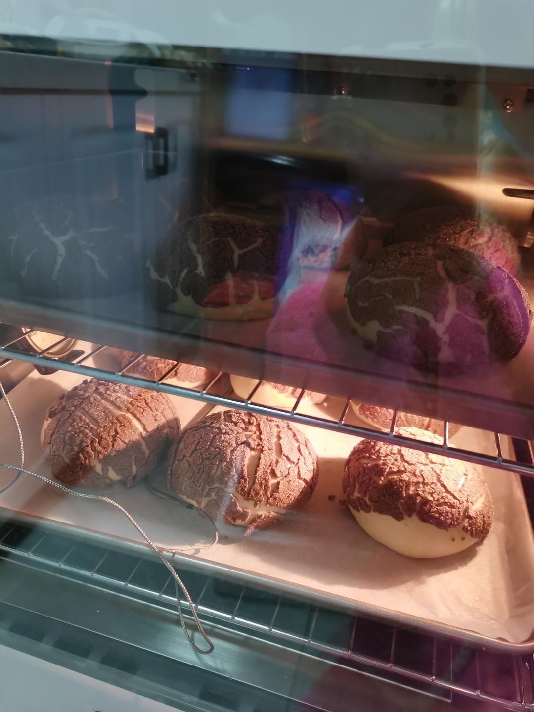 笑笑0076 做过 做100款面包の12:在家开茶餐厅!港式菠萝包 –不划格子自然裂开的香酥脆皮!菠萝油/酥皮包 方子很好,里面夹了黑巧,酥皮+5克巧克力粉,60克面团,20克酥皮,风炉#早餐•2022年12月14日# 155℃18分 2022-12-14