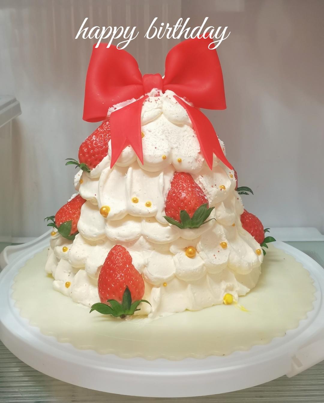 圣诞树蛋糕,做的翻糖蝴蝶结没放稳倒下去了,下次可以用牙签固定下。另外生日快乐啊❤❤