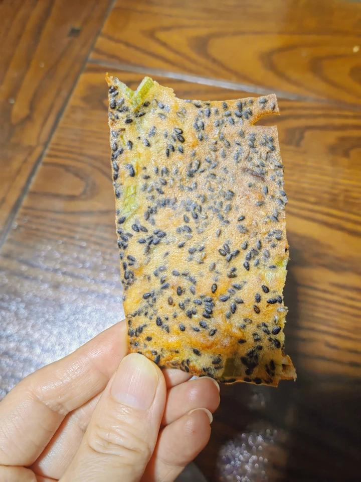 水茗-1 做过 芝麻薄脆饼干,一步操作,超级简单 收藏的那个薄脆的菜谱不小心取消了,怎么也找不到了,传到这个菜谱下边吧,只为记录:蛋清90(三个柴鸡蛋)、低粉30、玉米油25、糖25、香葱10、芝麻20、肉松20,160度25分钟,香酥脆刚刚好#晚餐•2022年12月17日# 2022-12-17
