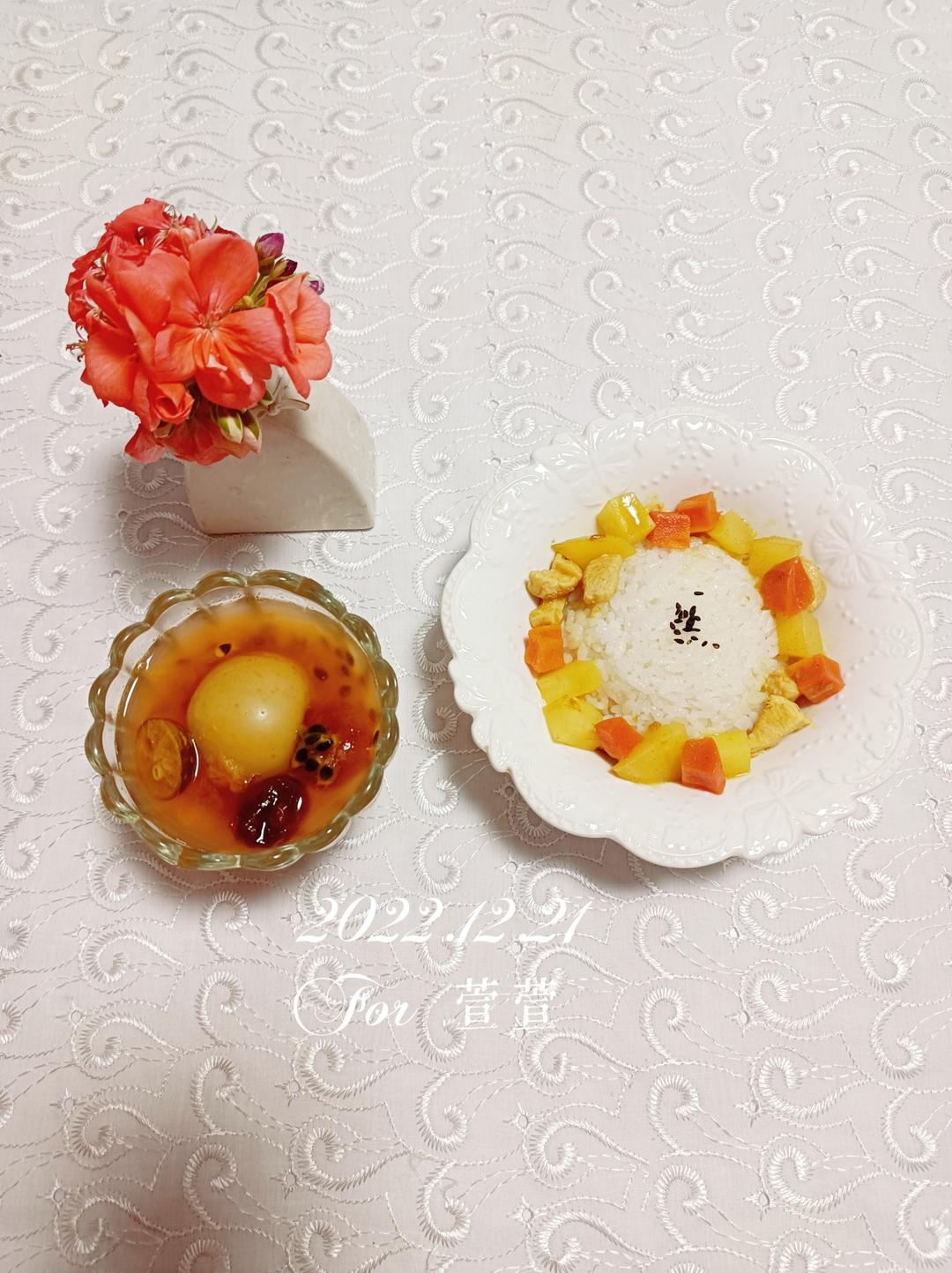 今日早餐:水果茶、咖喱饭。