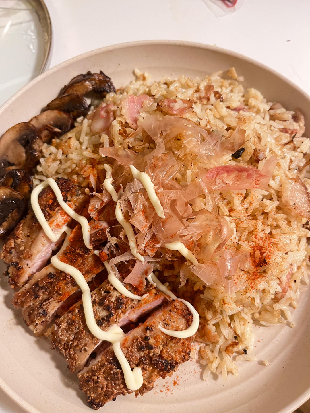 脆皮鸡排和木鱼花炒饭🤤