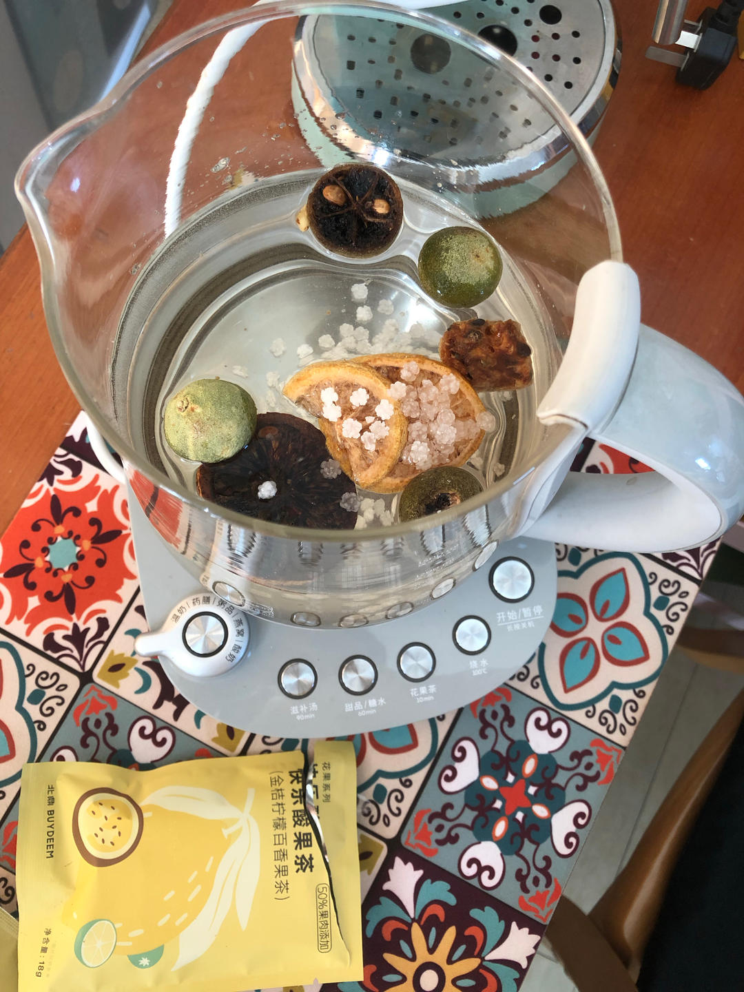身边好多阳,用养生壶煮一壶金桔柠檬百香果茶补充维c,不比维c泡腾片香吗