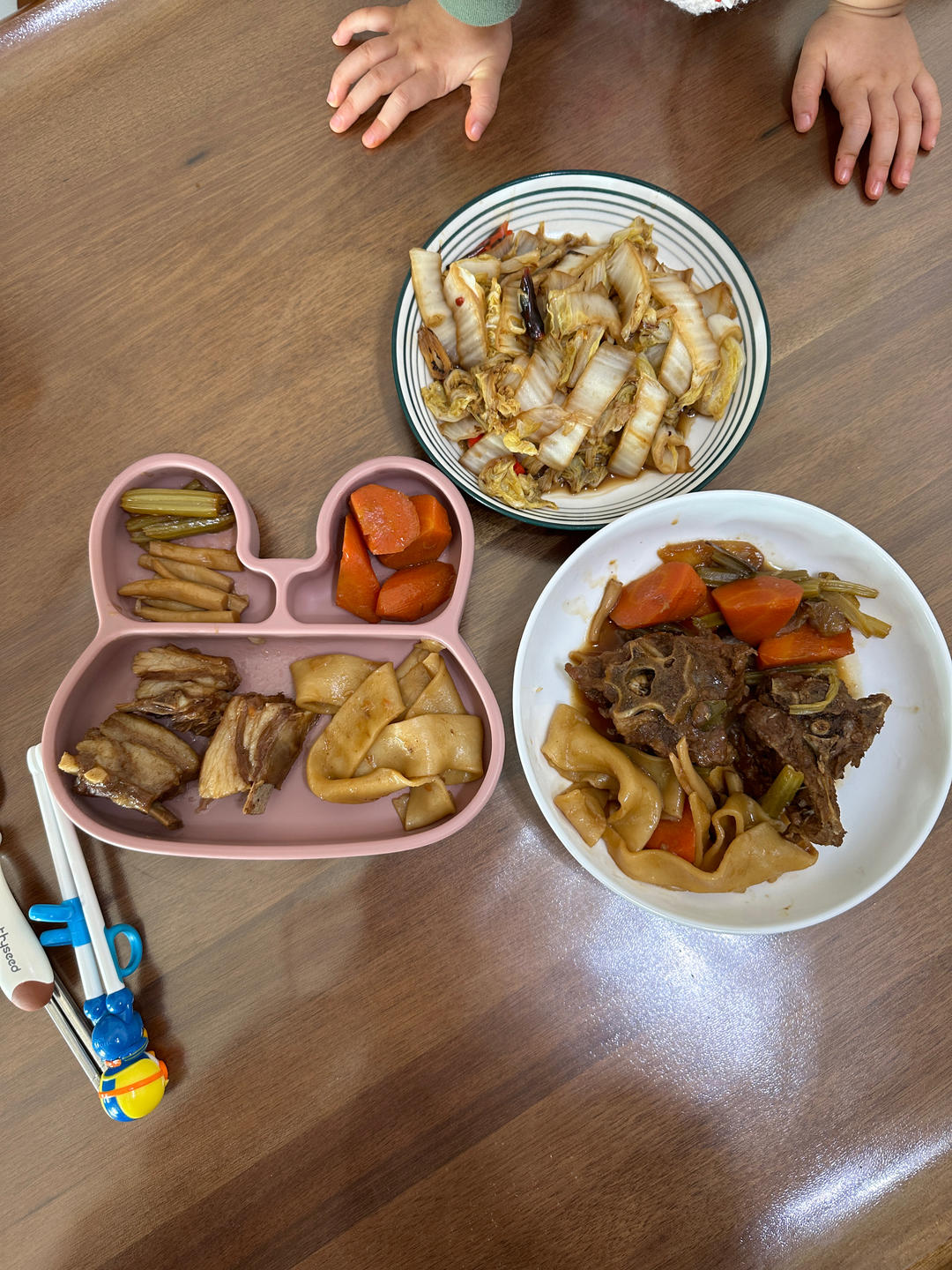 红烧羊排羊蝎子拉条子、炒白菜