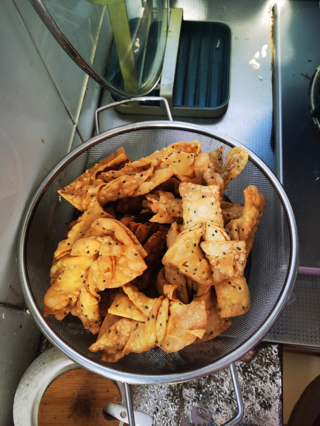 潘大喵 做过 午餐•2023年1月9日 #午餐•2023年1月9日# 零食,第一步:半斤面粉,一个鸡蛋,15克淀粉,四克盐(糖),少许油。一点一点的加水揉成硬面。醒面后擀成面片薄厚的面皮,两个一碟,中间拉三刀,然后反转,下油锅170度左右,当两面微黄时出锅。拿下! 2023-01-09
