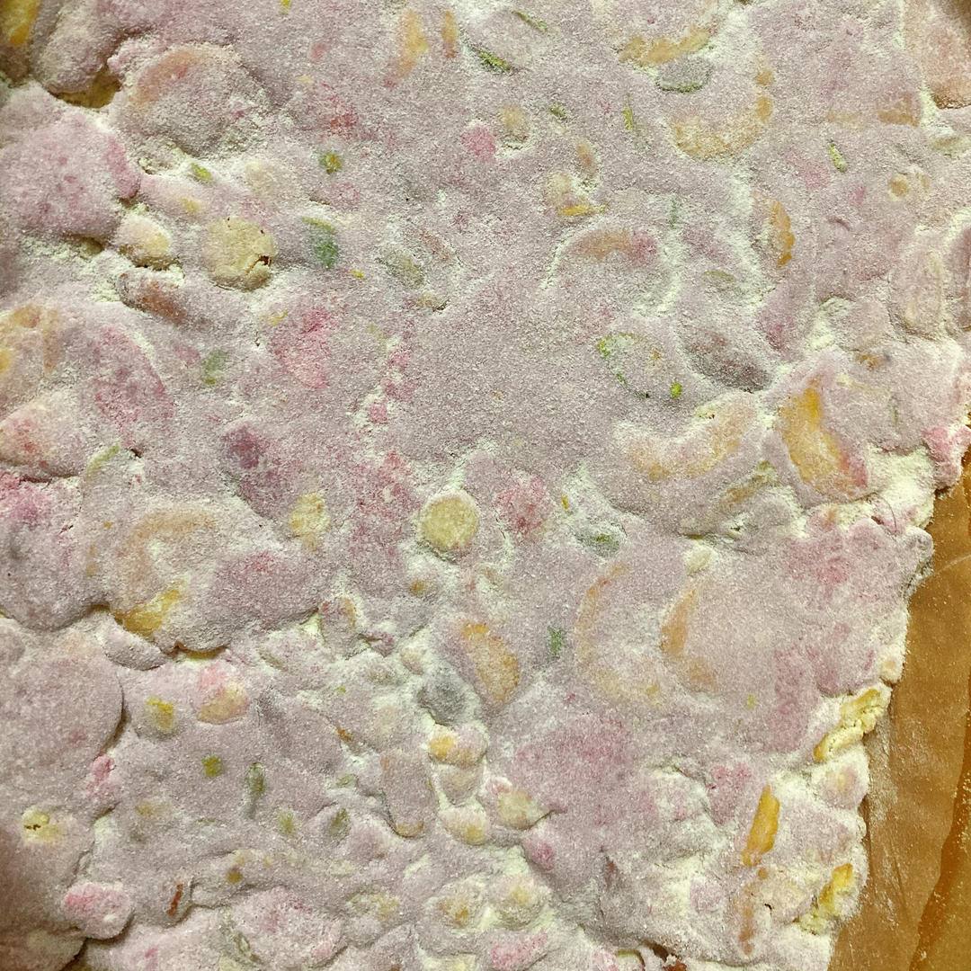 没事瞎鼓捣i 做过 雪花酥 太喜欢这个温柔的颜色…(确定第一批做的草莓潮了软了,但是酸酸甜甜的也还ok)为来做这个颜色单独去补货了360棉花糖,250饼干,100+奥利奥400+坚果,材料丰富到不行哈哈哈哈…坚果比较多,有点点咸,也不会很甜…整形比第一次成功!图4是第一批,坚果少一半哈哈哈哈 2023-01-11