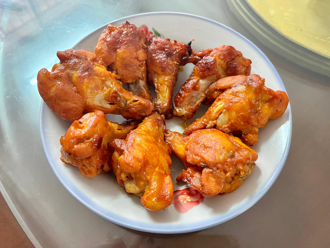 sunny_君咕 做过 烤箱版奥尔良大鸡腿 只用了奥尔良粉35g(可能多5g),35g水制作腌料,用剪刀在鸡腿上划出几道口子,再戴一次性手套按摩鸡腿5分钟,放入冰箱冷藏一夜。长帝烤箱200度预热10分钟,烤20分钟,再拿出翻面再刷一遍腌料,再烤10分钟。很入味。赞👍#烤箱# 2023-01-14