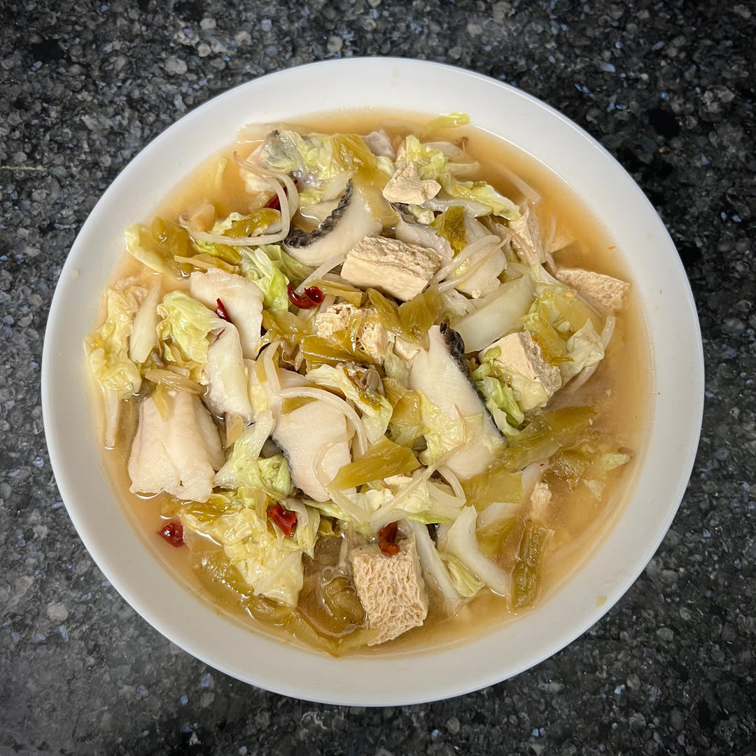 上周末做的豆沙血糯米八宝饭解冻后蒸二十分钟,没放猪油所以不如外面卖的软糯油亮,但好吃不腻😋(泡在牛奶里就变成血糯米奶了🤣);年年有🐟酸菜鱼简单又寓意好,Weee线上下单买的黑鱼片比本地超市的罗非鱼做出来的口感好多了~还放了冻豆腐😁白菜豆芽一大堆!调味除了配的料包(用一半就够了),还加了点生抽、醋和盐,酸辣开胃🤤