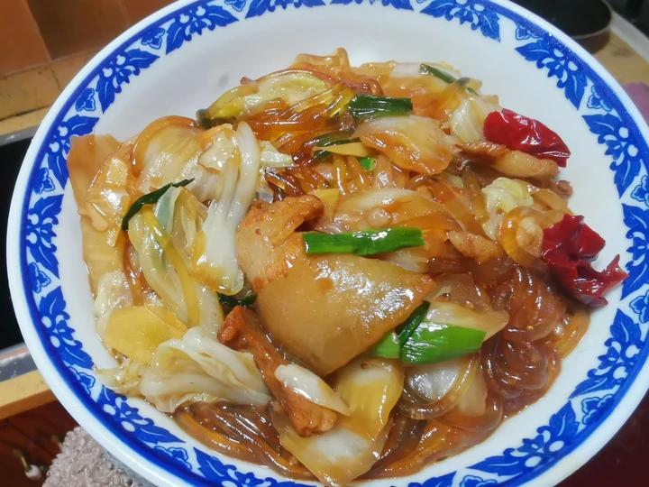 猪肉+葱姜辣椒+白菜+生老抽(2:1)+粉条+清水
