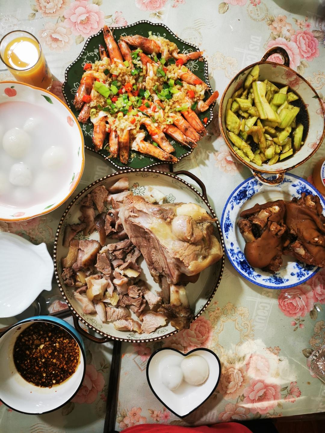 花蕊芬芳蕊 做过 2023年02月05日 2023.2.5(日)正月十五“元宵节”午饭猪手、蒜蓉大虾、肘子沾蒜泥、拍黄瓜主食:元宵(黑芝麻馅)、大汤圆(花生馅)买的都是三全的,各煮10个,好吃🤗 2023-02-05