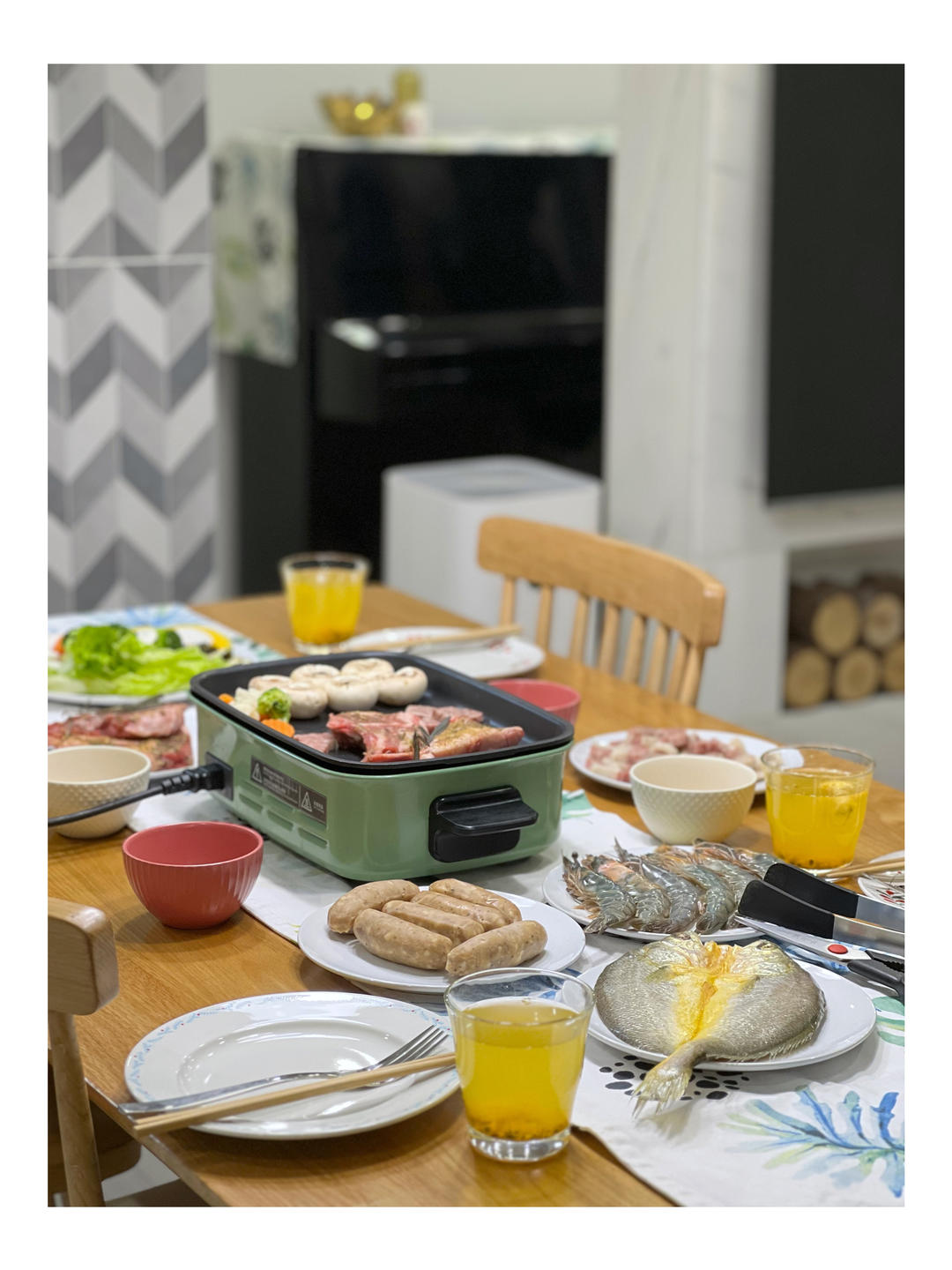 法式小羊排、澳洲和牛、黄鱼、对虾、鸡翅烤肠、蔬菜拼盘,元宵节自己在家BBQ
