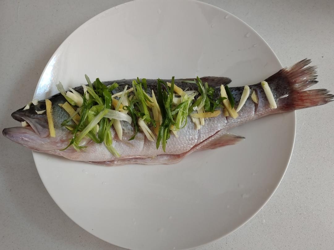 一斤四两的鲈鱼,水烧开后放入鲈鱼蒸九分钟关火闷五分钟出锅刚好,第一次做,味道不错也不腥,相当OK