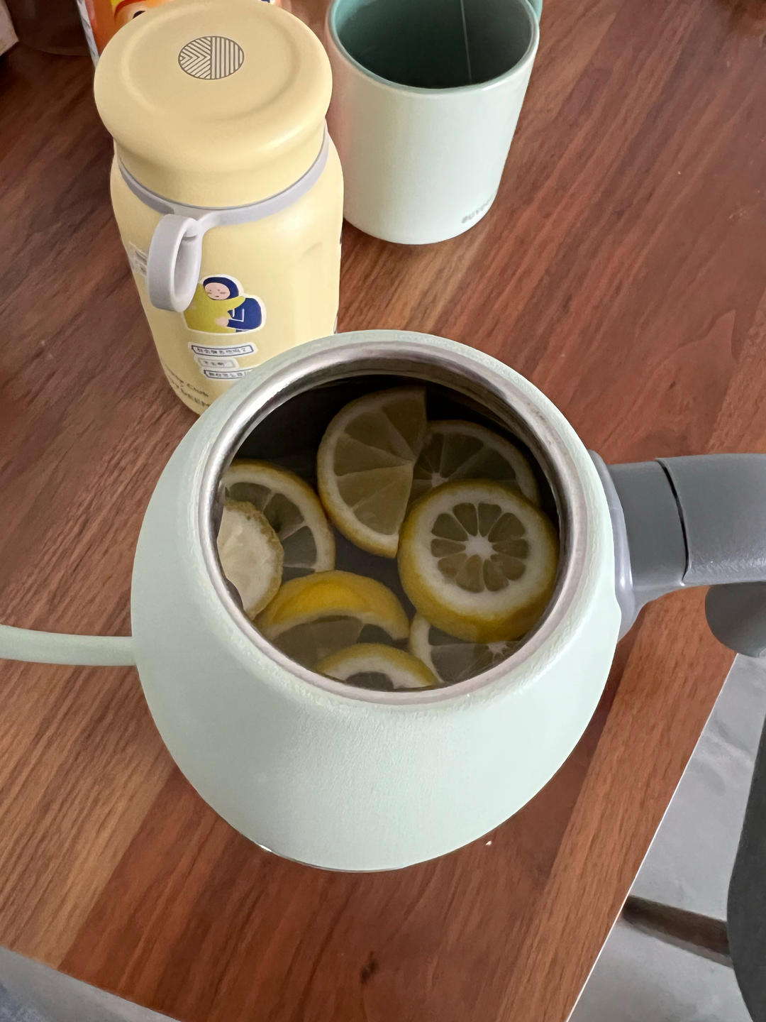 只需要一个柠檬,切片,去籽(担心堵塞出水口),然后倒水烧开,泡一会儿。你就得到一个全新的水壶啦!