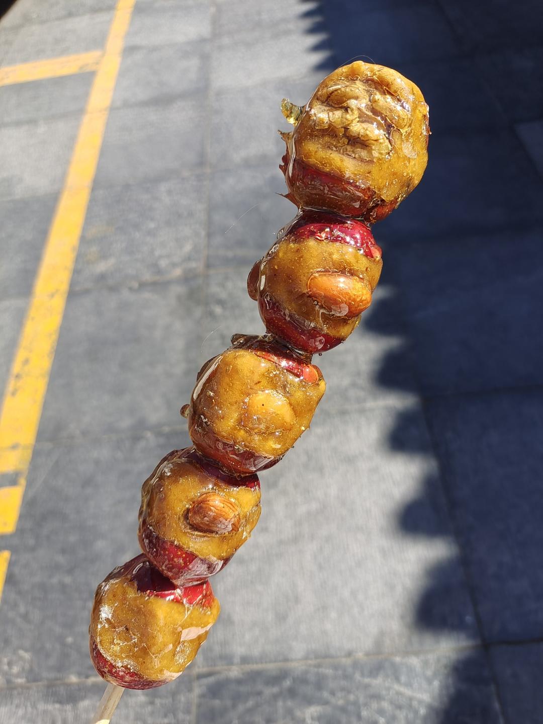 路过本地网红糖葫芦店,买了根豌豆沙馅儿的,超出预期的好吃,买的人多是有道理的