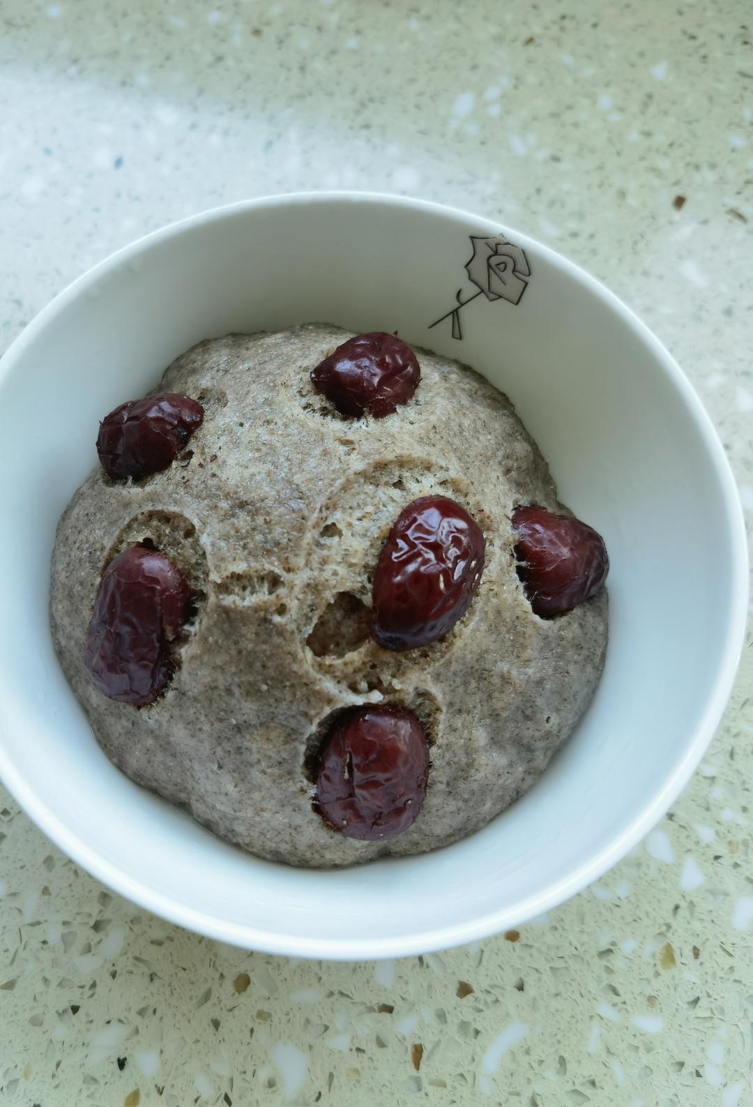全麦自发粉75克白糖6克,水应该放了55克吧忘了,很扎实,挺好吃的