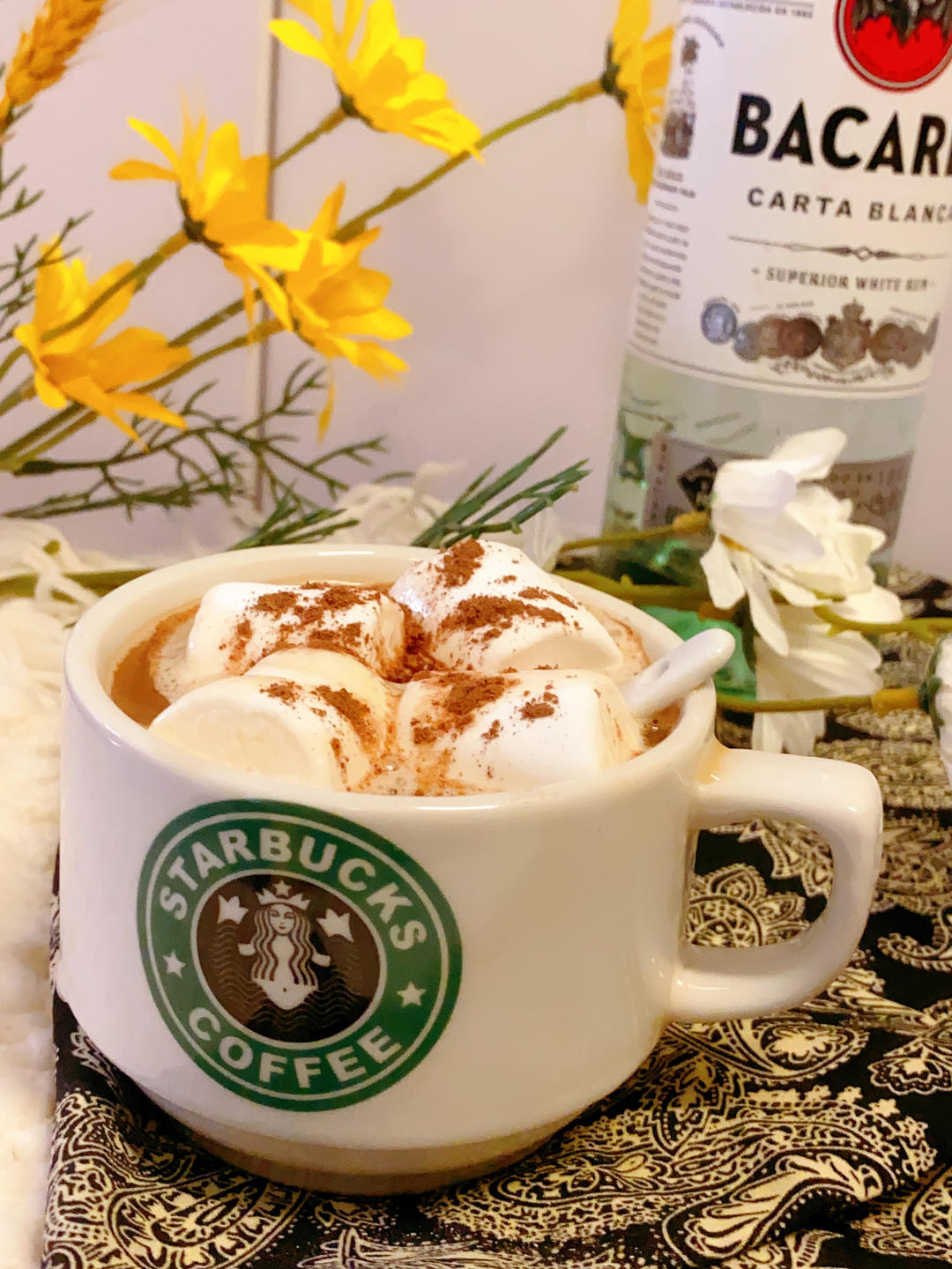 速溶咖啡(或现磨咖啡)➕朗姆酒➕棉花糖➕可可粉