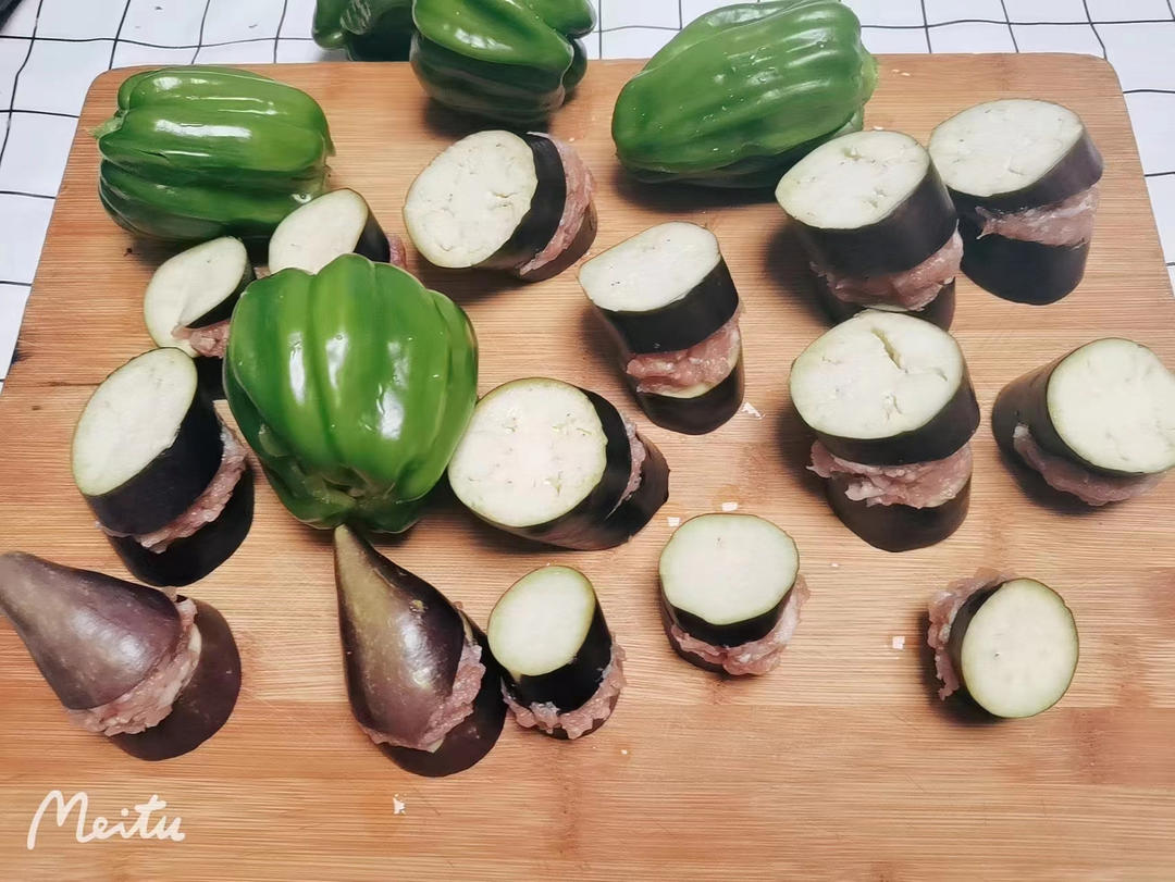 今天是爱空气炸锅的一天~给娃子弄点无油版茄盒和青椒🫑肉夹~一口没给爸爸留……