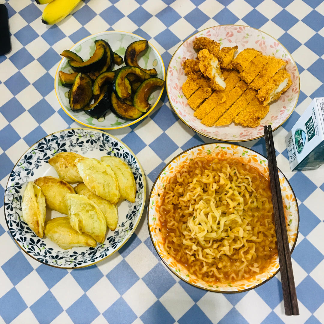 奶油火鸡面➕自制鸡排➕烤贝贝瓜➕菠萝派