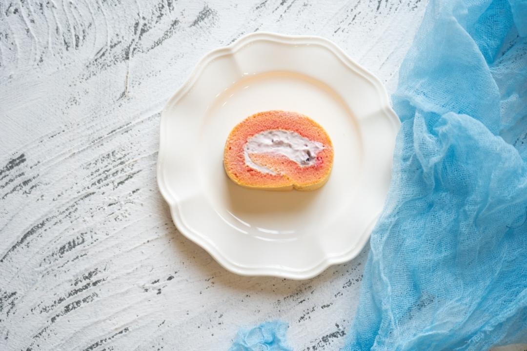 复刻老师的火龙果蓝莓陷蛋糕卷,淡粉色很好看超级好吃,蓝莓陷的淡奶油味道很特别~