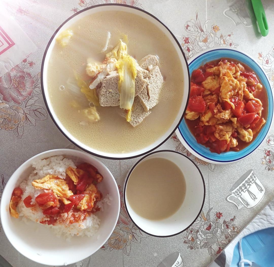 豆腐白菜鸡蛋汤,今天又加了一点虾滑,味道棒棒哒,隔两天就想喝