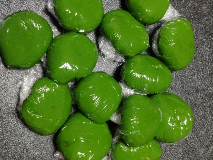 调整木薯粉40,澄粉50,麦青汁300,其他不变