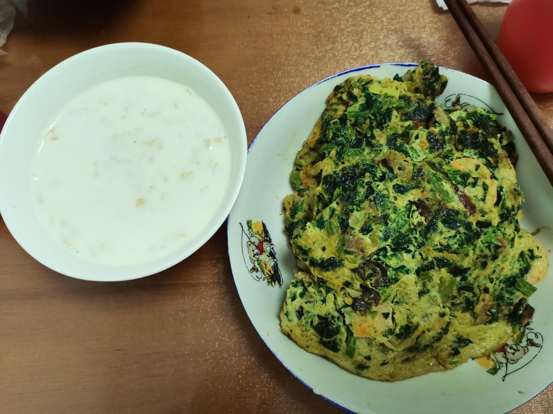 菠菜鸡蛋饼+燕麦牛奶粥