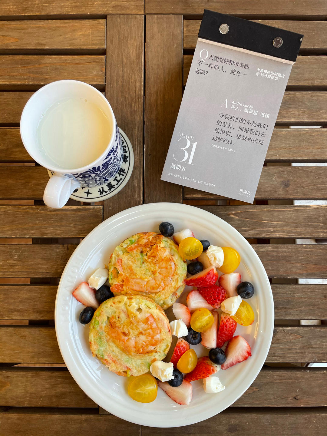 宅小胖丽丽 做过 早餐•2023年3月31日 #早餐•2023年3月31日# 今日:包菜虾仁🍤蛋饼、豆浆出门外卖了一杯热美,感冒后身体一直不好,不舒服了整个人都丧丧的,想要快点好起来。#爱,就是一起吃饭# 2023-03-31