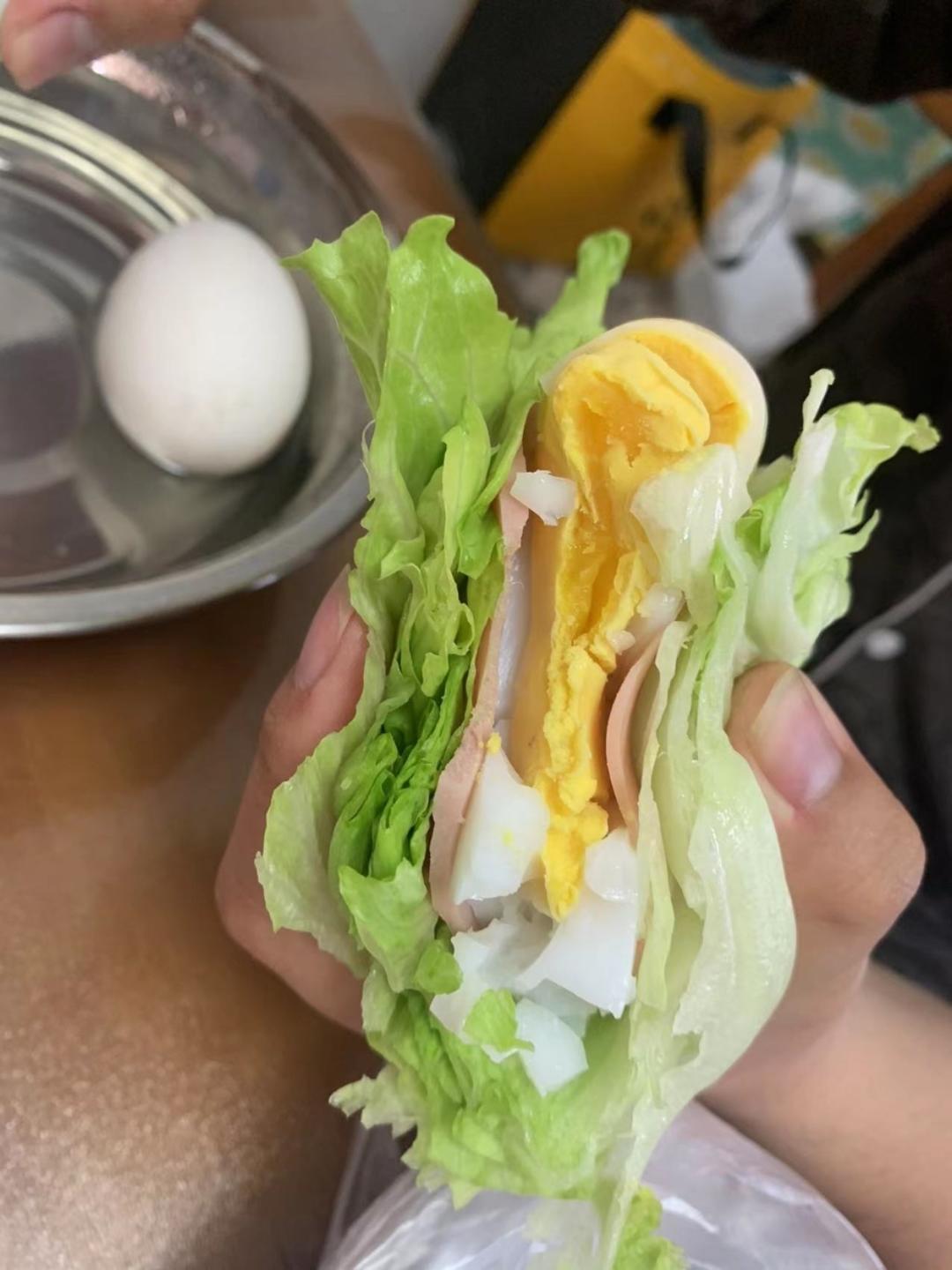 球生菜+1个自家鹅蛋+2片火腿+牛奶