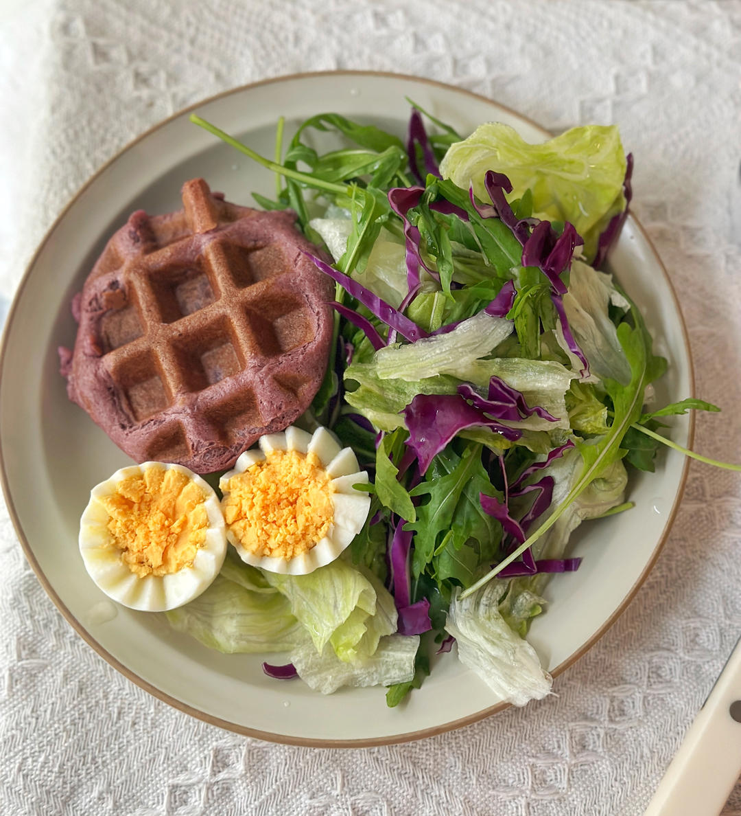 小belle 做过 4月早餐马拉松 https://www.xiachufang.com/ad/events/redirect_custom_url?rcu_variety=marathon">#定格我的早餐瞬间# 自从买了3斤蔬菜沙拉后,基本上都在吃草🤦🏻黑麦华夫饼+紫薯芋泥馅,好好吃啊鸡蛋煮太久了,切个花吧。 2023-04-05