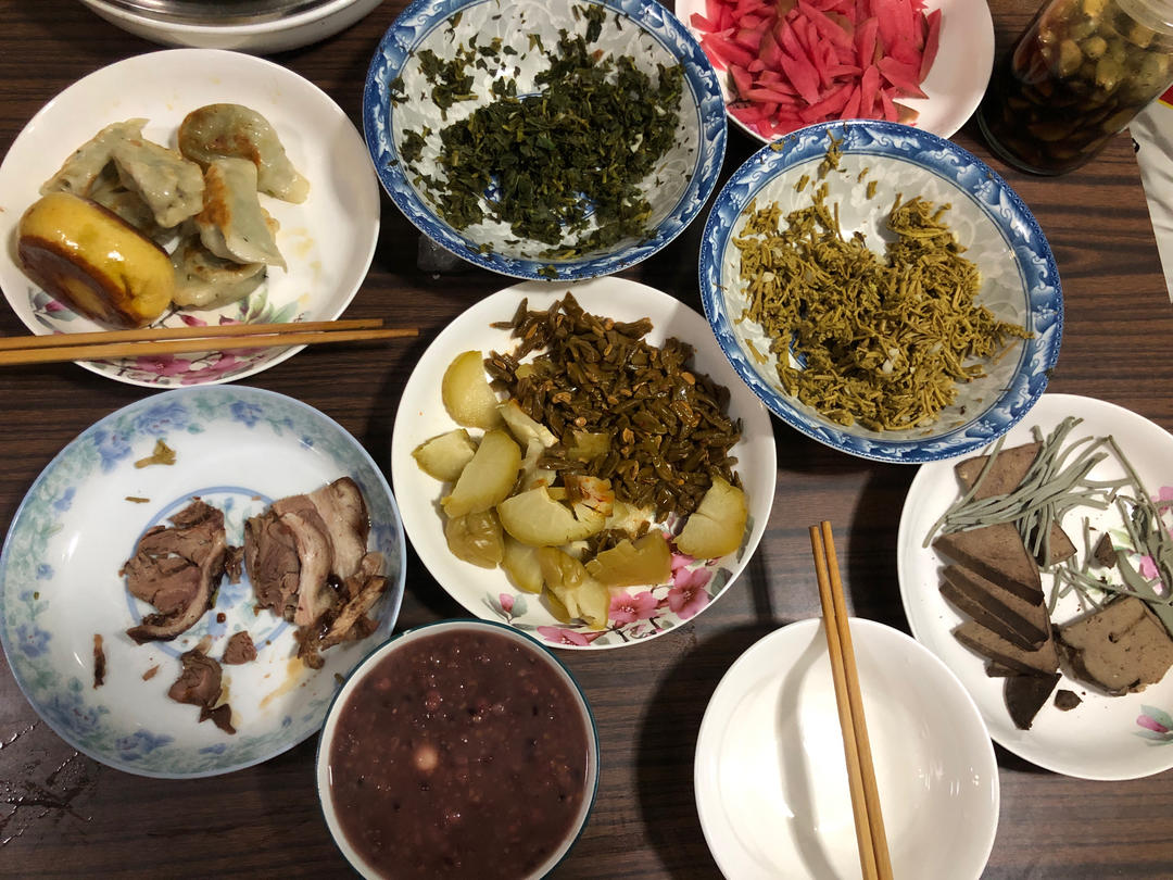各种咸菜和野菜搭配哦😯😄