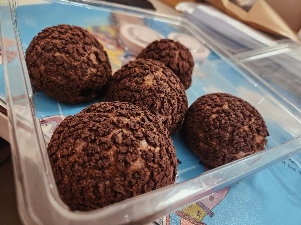 泡泡奶2 做过 抹茶奶油馅可可泡芙,个个空心,零失败 方子很好,只是奶油有些淡,抹茶的话,调整到24克还有点淡😭,下次调到30差不多吧。温度长帝200/150,30分钟,底部稍有凹陷,给自己记录一下,下次底火调到160左右吧 2023-04-08